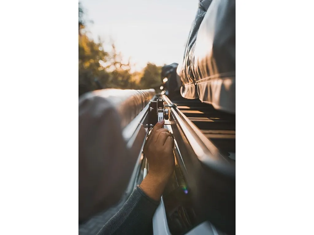If you don’t want to keep your awning on your vehicle at all times, Front Runner's Quick Release Awning Mount Kit gives you the freedom to mount or remove your awning in seconds, and with no tools. The 2 lockable latches give you safety and added peace of mind.
