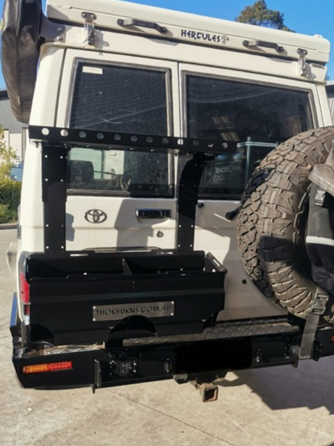 Designed to bolt between your Dual Jerry Can Holder and Accessory Swing Arm. Made from 3mm Aluminium there are a number of pre-drilled holes on the shelf, allowing compatibility with various other products such as our 4kg Gas Bottle Holder.