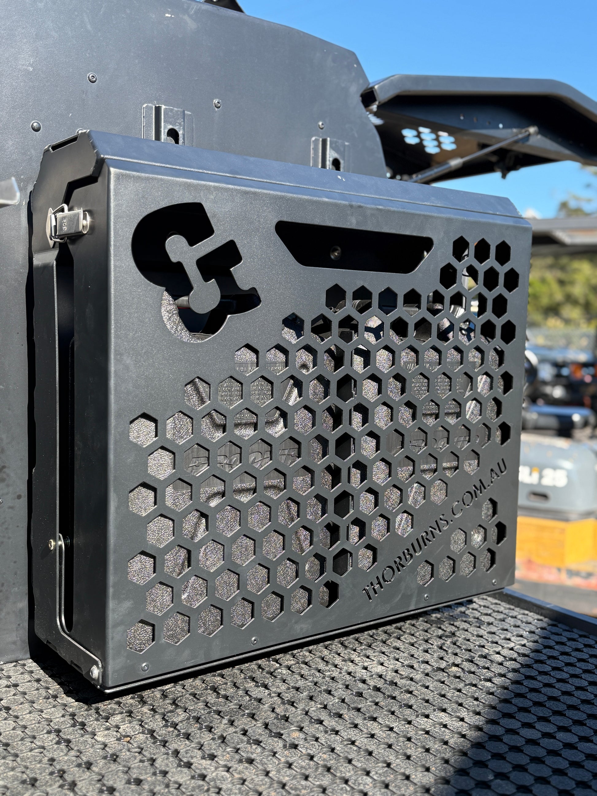 Designed to fit seamlessly onto our accessory arm just like our standard double jerry can holder this lockable version offers even more versatility. Mount it to the back of your ute's headboard, canopy, or anywhere else you need secure storage. With a 45kg weight rating, it's not just for fuel or water, use it to safely store extra gear for your next adventure.
