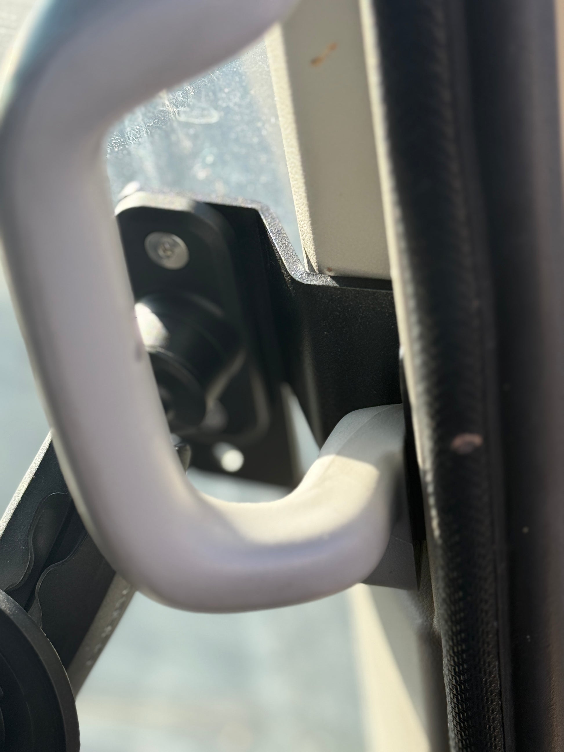 - Reinsert the factory bolt through the grab handle and Pillar Bracket.