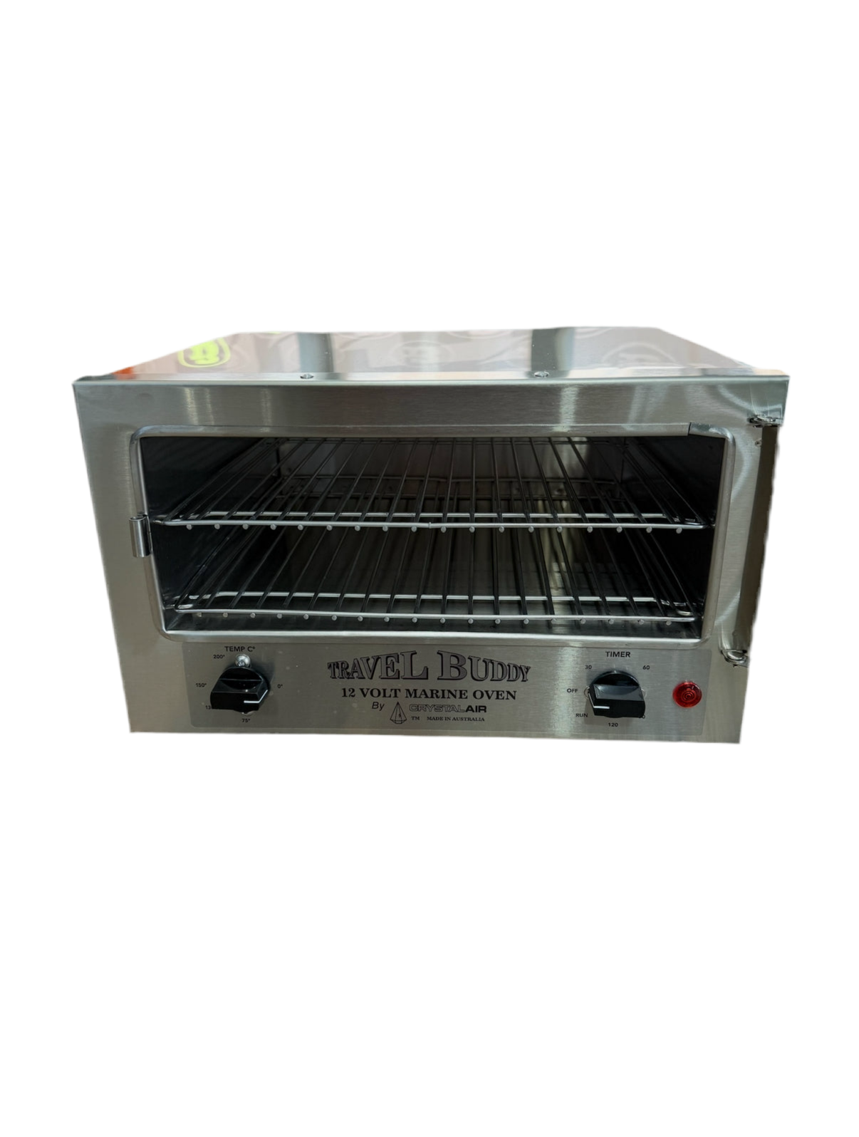 Fast Food takes on a new meaning with the Travel Buddy. This portable, lightweight, 12 volt oven can cook, bake and warm foods while you travel